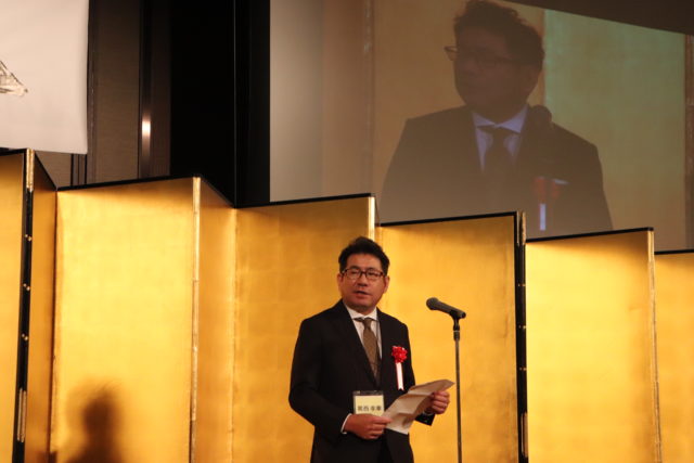 観峰先生のお孫さんで元淡海講師、現日本習字教育財団理事長からお祝いの言葉をいただきました